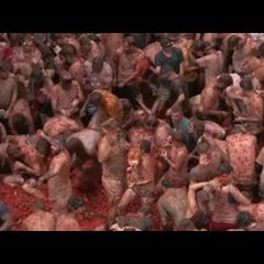 | Tomatina festiva, internacional y multitudinaria tiñe de rojo Buñol |