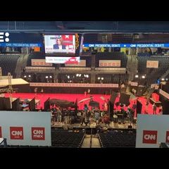El Hank McCamish Pavilion se prepara para recibir a la prensa en el debate presidencial...